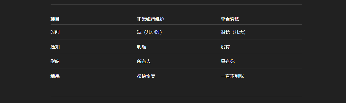 ❗ “银行维护+长期不到账”,基本就是平台不给出款